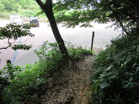 河内貯水池分岐 8時51分 この分岐より右に進み、国見岩を目指す。 |