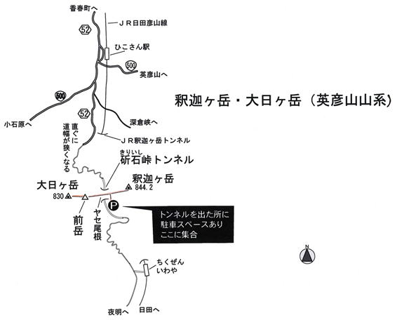 土曜日の午後、仕事をしながら「明日は福智山に登ろうかなあ〜」と思っていた。そこに、突然H師匠からお誘いのメールが入った。目指すのはまだ登ったことのない釈迦ヶ岳と大日ヶ岳とのこと。 |