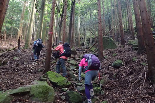 | 我々がモタモタ進んでいると後方から、先程別れを告げたトレラン3人組が追いついてきた。 「お先にどうぞ!」とあっさり道を譲りました。若さが羨ましい。 |