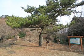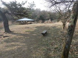 「休けい所」と書かれてある細い木 7時36分 |