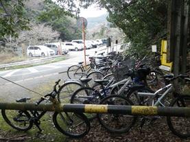 頓野林道 9時13分 九州自然歩道にバイク乗り入れを防止する丸太の柵が・・・。福智山まであと4.1キロ。 楽勝 |