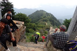 ![]() 山頂広場の縁岩から下を覗くと |