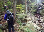 2の沢 9時30分 大小の岩がゴロゴロとして歩き難い。右上に小さな滝があるが水量は少ない。 小さな滝 |