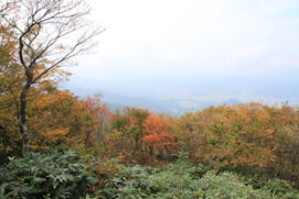 | 山頂と展望台の途中から 11時01分 山頂周辺の紅葉は最盛期を過ぎているようだった |