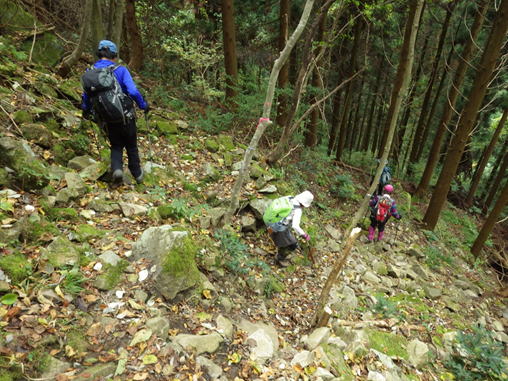 往路必死で上った急登を下る 12時30分 滑り易く要注意!