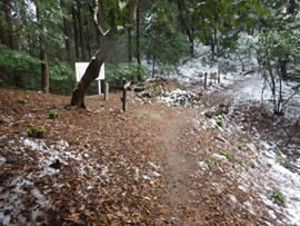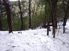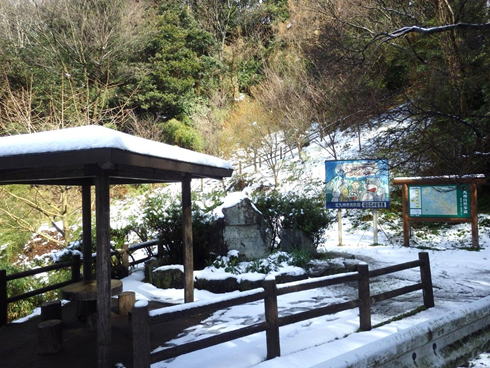 | 雪化粧した市ノ瀬峠の東屋 11時40分 ここからは権現山・皿倉山へと続く |