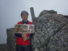 7、大汝山(おおなんじやま)山頂 11時55分 3015m さあ次は富士の折立を目指す!室堂からここまで3時間47分経過している。ちょっと時間がかかりすぎているようだ! |