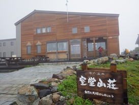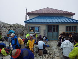 一の越山荘 14時15分 ようやく一の越山荘に到着。ここまでくればちょっと安心。視界は依然として不良である。 室堂へ |