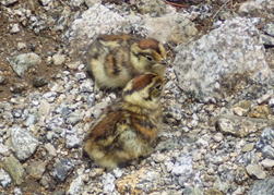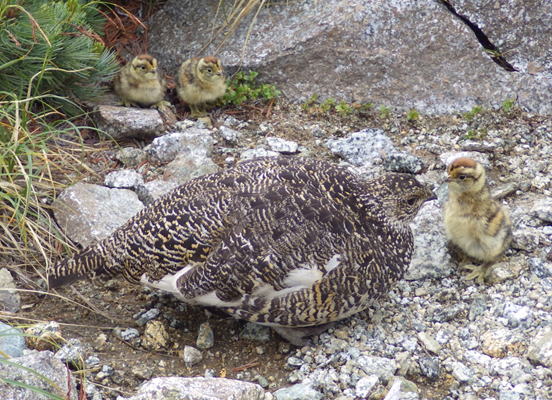 雷鳥親子 親鳥とヒナが何やら会話をしているようだ 12時10分 近づいても逃げない