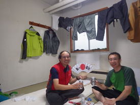 早朝、部屋の窓から景色を眺めるとすでに小屋を出発する人達がいた。 5時24分 気温10度