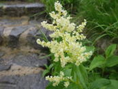 雷鳥沢ヒュッテが見えた! 15時52分 ゴールが見えたら元気百倍。しかしこの長い下りの石畳は、雨で濡れてとても滑りやすい。 調子に乗って歩いていると尻もちをついた。 ヤマハハコ |