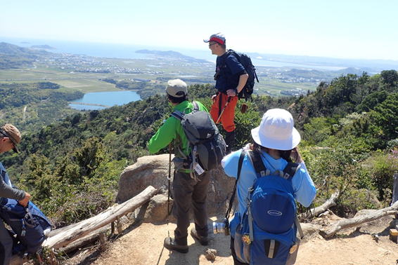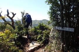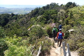 今回訪れたのは山口県山口市秋穂町に聳える大海山(おおみやま)と勘十郎岳(かんじゅうろうだけ)である。メンバーはなんと10人の大部隊。山の情報誌「のぼろ」の専属ライターであるN村さんやT師匠を筆頭に、常日頃、山に慣れ親しんでいるツワモノばかりである。その中で、小学2年生の男の子(T井夫妻のお孫さん)が元気に縦走完歩し、楽しいハイキング登山になりました。 |