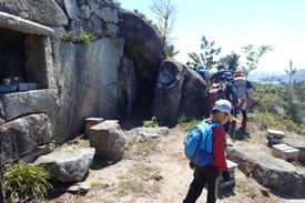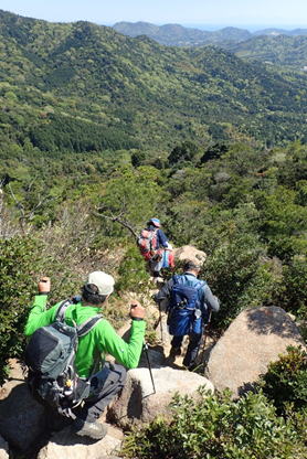 東峰から西峰へ 13時30分 「さあ次に行きましょう!」と、最後のピーク西峰へと向かう。 添い寝岩 |